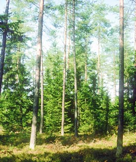 - Nährstoffmangel und Bodenversauerung als Folge historischer Landnutzungsformen (Waldweide, Schneitelung und Streunutzung): Laubbaumreiche Mischwälder wurden von Nadelwäldern, wie etwa anspruchslosen Kiefernwäldern, abgelöst (Abbildung). Auch wenn Streunutzung und Schneitelung längst nicht mehr durchgeführt werden, der ursprüngliche Basen- und Nährstoffzustand unserer Wälder wird nur langsam wieder hergestellt (Agrarische Waldnutzung in der Schweiz).