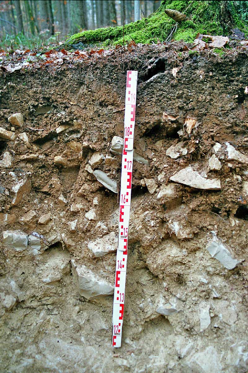 Prof. Ernst E. Hildebrand formulierte es so: "In der Not frisst der Wald Steine". Die Anlehnung an das Sprichwort über die diabolische Geschmacksaversion gegenüber den untergebenen Fliegen, deren Proteingehalt in Notzeiten doch zu schätzen gelernt wird, trifft für die aktuelle Lage der Waldböden zu, deren Feinerde durch eine tiefgreifende Versauerung einen Großteil ihrer Speicherfunktion für Pflanzennährstoffe verloren hat. Diese Analogie ist nicht so zu verstehen, dass wüchsige Wälder sich auch problemlos aus reinen Gesteinsböden ohne Feinerdeanteile ernähren können. Reine Gesteinsböden findet man in den Grenzbereichen der natürlichen Vegetation, auf Schutthalden, im Hochgebirge oder an extremen Steillagen. Baden-Württembergs Wälder jedoch wachsen überwiegend auf Mischungen aus Feinboden (Sand, Schluff, Ton), organischer Substanz und Steinen in variabelster Zusammenstellung.