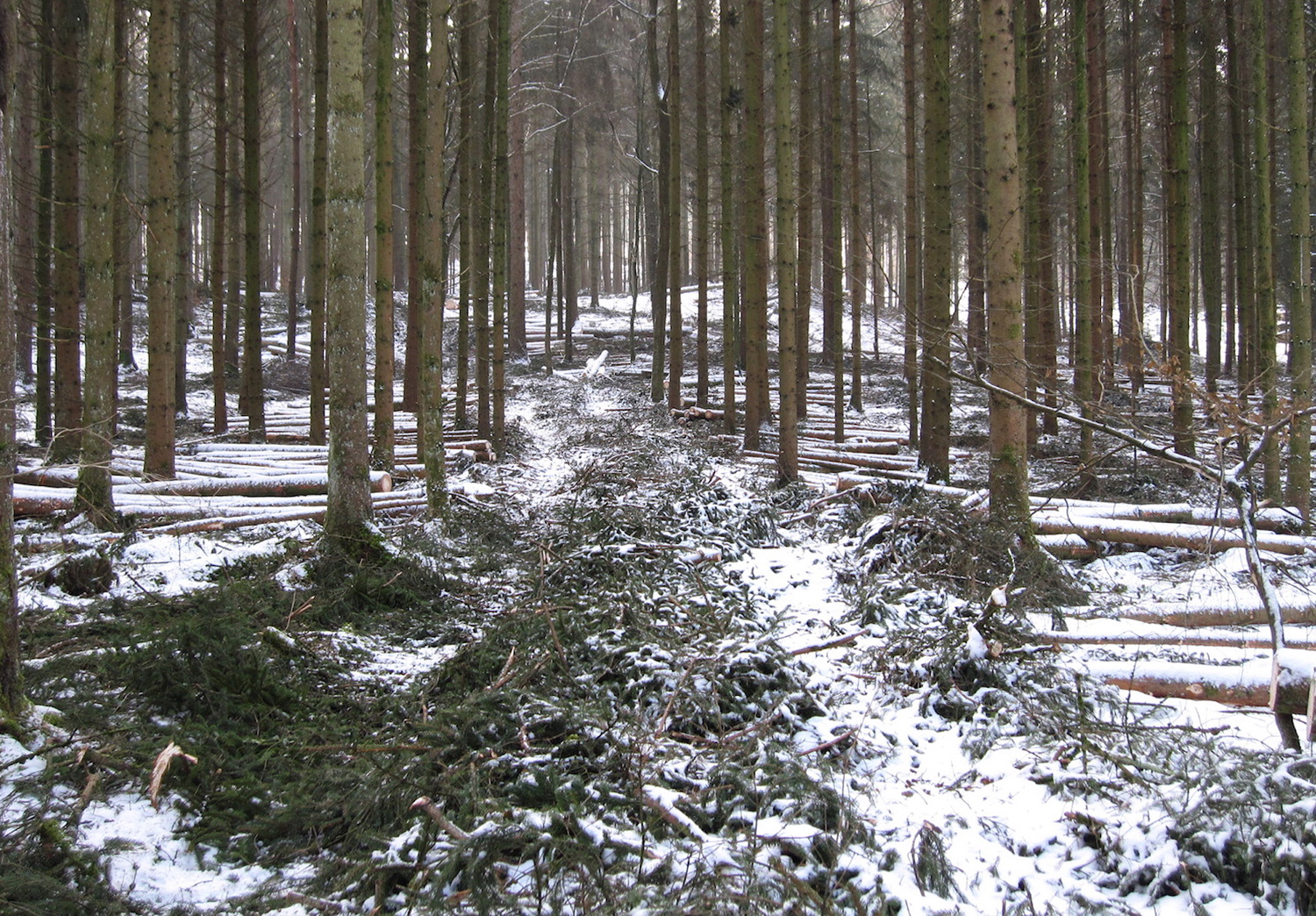 In Forum für Wissen 2022 wurde dieses Thema wieder aufgenommen, im Sinne einer Zwischenbilanz, inwieweit die entsprechenden Massnahmen aktuell umgesetzt werden. Inwieweit sind Forstwart-Lehrlinge und Forstpersonal durch gezielte Schulung und Aufklärung in Bezug auf bodenschonende Holzernte sensibilisiert? Werden zum Beispiel nach lang anhaltenden Niederschlägen bodenschonende Massnahmen wie das Reduzieren des Reifenfülldruckes oder das Auslegen von Reisigmatten in den Rückegassen angewendet (Abb. 4). Durch Beachten solcher Leitlinien kann der Forstdienst viel zum Erhalt der Bodenfunktionalität beitragen.