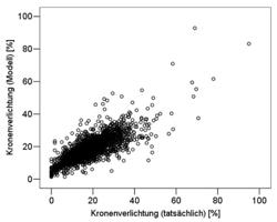 Abb.2: Gegenüberstellung von modellierten und tatsächlichen Werten der Kronenverlichtung