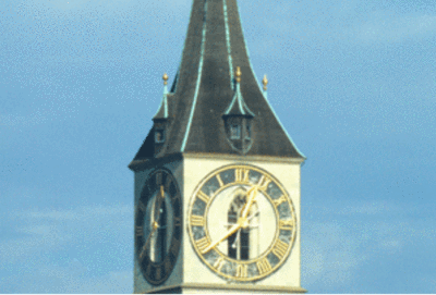 Abb. 3 - Das Dach vom Kirchturm St. Peter in Zürich - dem Turm mit Europas grösstem Zifferblatt - besteht aus Lärchenschindeln. Foto: Doris Hölling (WSL)