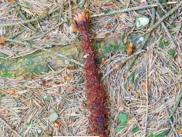 Abb. 2. Angenagter Zapfen auf dem Waldboden. Wer war's? Foto: Doris Hölling