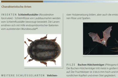 Besonders hervorzuheben sind dabei die informativen Übersichten der wichtigsten Naturwaldstrukturen wie Spechthöhlen, Kronenbruch, Zunderschwamm- oder Kletterpflanzenbäume für die Biodiversität.
