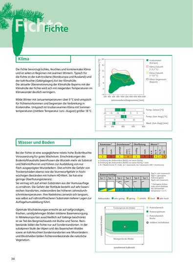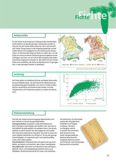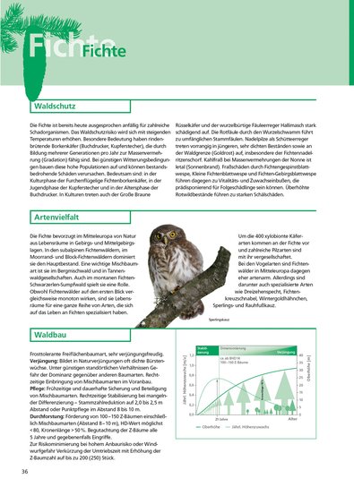 Abb. 3: Steckbrief Fichte. Jede Baumart wird auf vier "Steckbrief"-Seiten kompakt beschrieben.