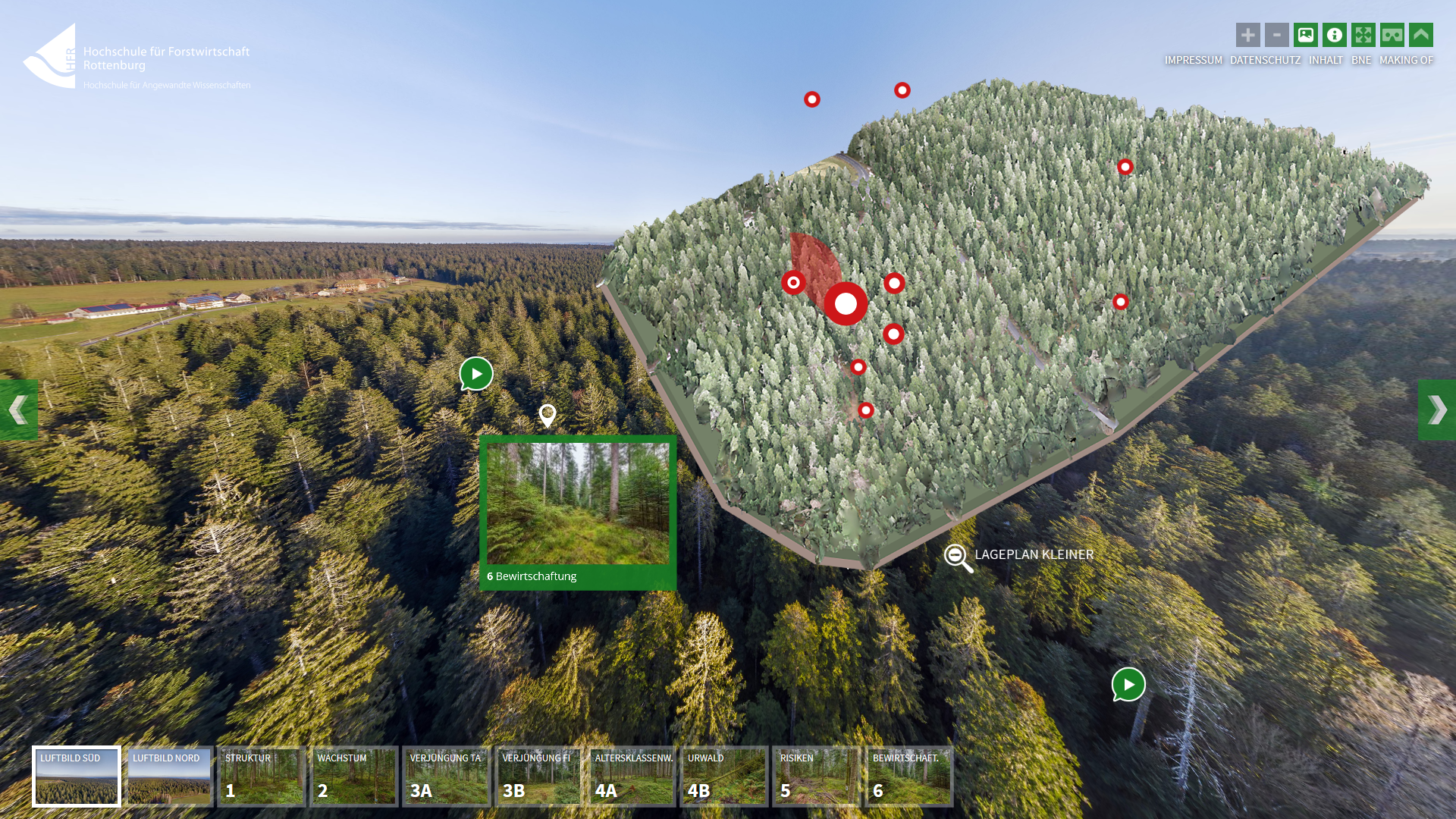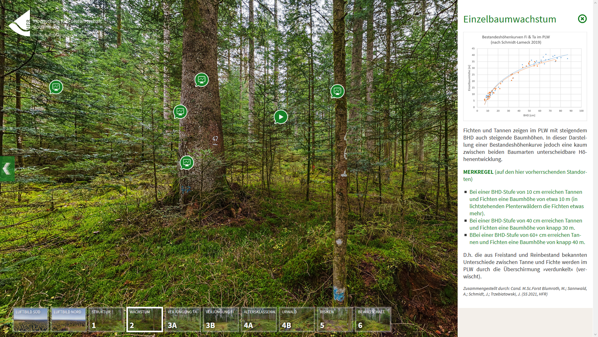 Unter dem Titel „Plenterwald und Plenterbewirtschaftung – eine digitale Kurzeinführung in 3D, 360° & interaktiv“ wurden folgende Teilaspekte bearbeitet: