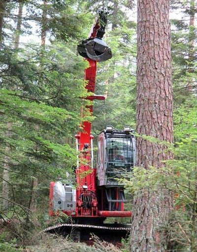 Abb. 2: Der Elliator bei der Kurzholzbringung: Wendigkeit und schonende Fortbewegung in dichten und nassen Bewaldungen sowie im Moor.
