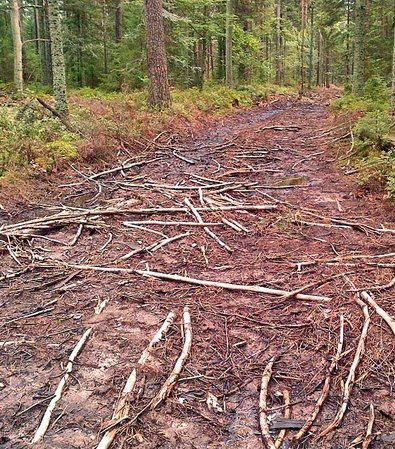 Abb. 4: Zum Vergleich: Fahrspur einer 6-Rad-Maschine mit aufgezogenen Moorbändern auf nassem Standort.