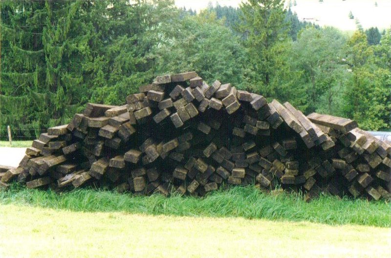 Abb. 1 - Auf bis zu 6 Millionen Holzschwellen war das Schweizer Schienennetz zeitweise befestigt. Die hier abgebildete Menge reichte gerade einmal für ca. 120 m Geleise. Foto: Thomas Richard