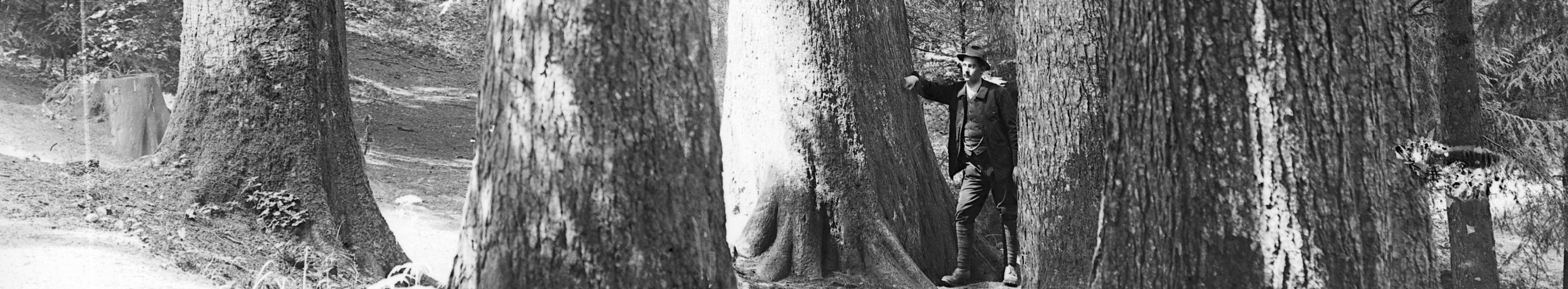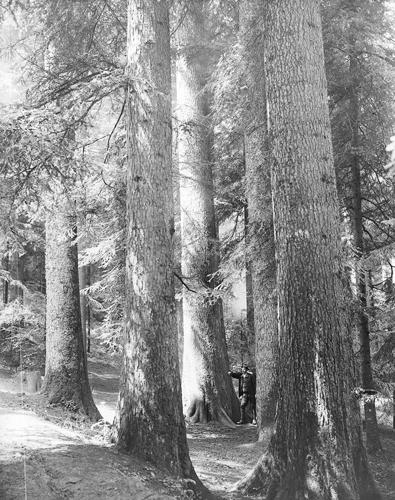 Abb. 2 - Die stärksten Tannen um 1914. Zwischen den Stämmen steht ein Mann. Foto: Hermann Knuchel