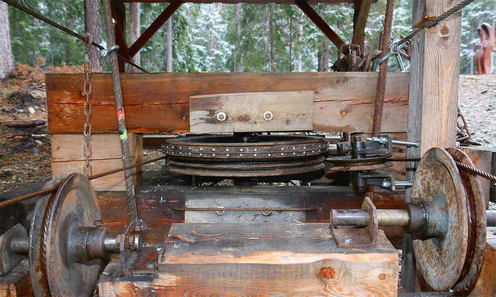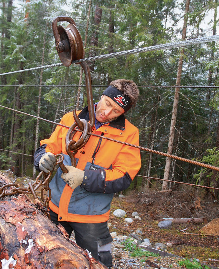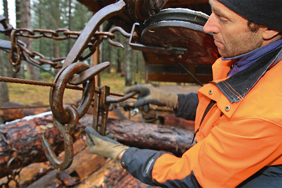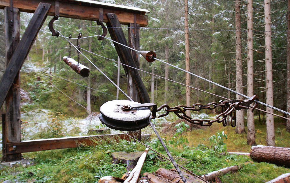 Dort rosteten sie vor sich hin, bis Mario Riatsch im Jahr 2007 auf die Idee kam, die stillgelegte Seilbahn aus dem Dornröschenschlaf zu wecken und in seinem Revier zu Demonstrationszwecken neu aufzubauen. “Meine Freude am Experimentieren mit Umlenkrollen und Drahtseilen habe ich wohl von meinen Grossvater geerbt. Er war Forstunternehmer und hatte immer wieder mit Seilbahnen zu tun. Während des Zweiten Weltkriegs betrieb er beispielsweise eine 2 km lange Drahtseilbahn, um Legföhren für den Betrieb von Holzvergaser-Autos ins Tal transportieren zu können. Zahlreiche Teile, die an der Valtellina-Bahn ersetzt werden mussten, fand ich in seinem Geräteschuppen.”
