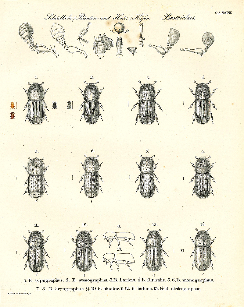 In Regionen außerhalb des heutigen NRW liegen schon aus früheren Zeiten Berichte über große Borkenkäfer-Kalamitäten vor. Erste Spuren eines Borkenkäferbefalls führt J. F. Gmelin 1787 für das 15. Jahrhundert im Harz auf. Zuverlässige Nachrichten liegen seit dem 16. Jahrhundert vor. Im 18. Jahrhundert schließlich nahmen die Schadensmeldungen immer mehr zu, so zum Beispiel 1748/1749 aus der Lüneburger Heide. Besonders häufig jedoch begegnen uns Berichte aus dem Harz, wo vor allem zwischen 1779 und 1785 „grossartige Waldbeschädigungen“ gemeldet wurden, „die wohl geeignet waren, die Forstwirthe mit Schrecken zu erfüllen“ (Bernhardt 1874). In den 1780er-Jahren sollen in den Harzer Kommunionforsten über 1,1 Mio. Stämme der „Wurmtrocknis“ zum Opfer gefallen sein (Beck 1909). Übrigens bezeichnete man den gemeinen Borkenkäfer (Bostrichus typographus L.) seinerzeit oft als „Schwarzen Wurm“, „Fliegenden Wurm“ oder Ähnliches. Das Vertrocknen und Absterben der befallenen Bäume ging als „Wurmtrocknis“ in die damalige Fachliteratur ein.