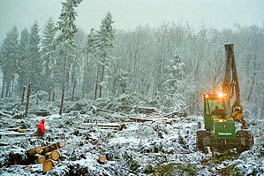 Auch bei Schneebruch und Eisregen sind die Nadelhölzer gefährdeter als das Laubholz, wobei natürlich auch die Herkünfte der Bäume eine gewisse Rolle spielen. In der Eifel wurden schon Mitte des 19. Jahrhunderts starke Ausfälle durch Schneebruch, besonders in Kiefernbeständen aus Flachlandherkünften, beobachtet. Insgesamt kamen im gesamten Land besonders Kiefern, Fichten und Tannen, danach erst Laubhölzer zu Schaden.
