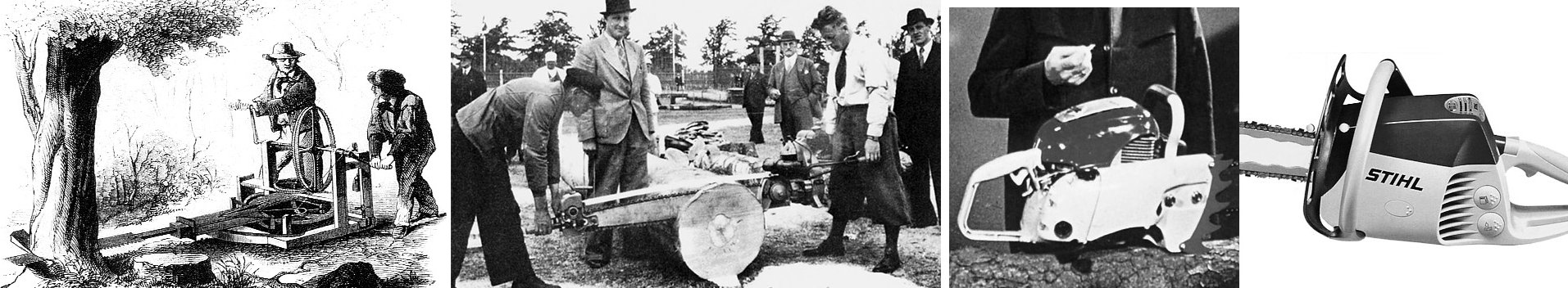 Der Weg zu den Motorsägen von heute war lang und kompliziert, einen einzelnen Erfinder gibt es nicht. Viele Bastler, Praktiker, Techniker und Konstrukteure schufen im Zeitraum von 1857 bis 1910 zunächst die Grundlagen für den Bau der ersten Motorsägen Anfang des 20. Jahrhunderts. Das Schwergewicht der Entwicklung lag naturgemäss in den USA, war doch Amerika schon damals führend in der Mechanisierung. Dort wurden die wundersamsten Ideen geboren, Geräte gezeichnet und konstruiert, vielleicht auch gebaut, aber ihre Bewährung war zweifelhaft und umstritten – der Nachwelt erhalten blieb keine.