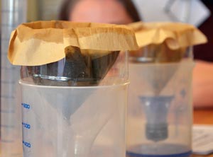 Der Hit unter den Versuchen: Gefärbtes Wasser durch einen Filter schicken (Fotos: BFW/C. Lackner)