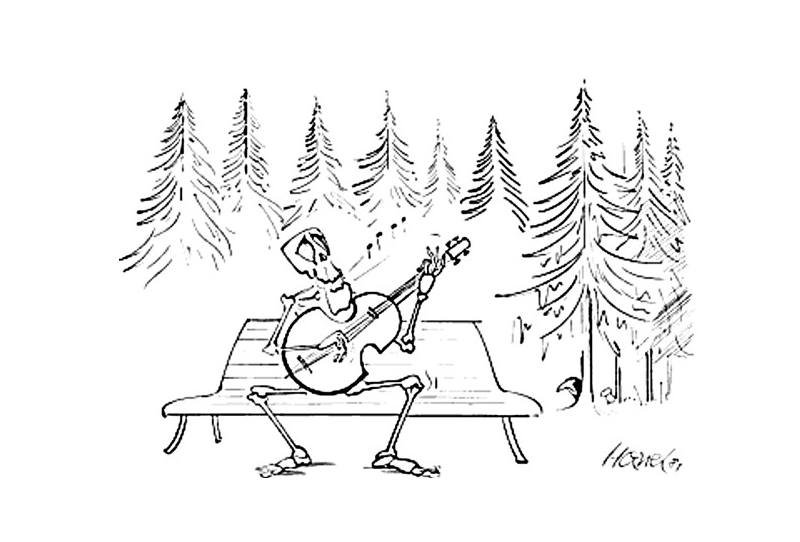 Abb. 1: "Waldeslu-u-u-st" Gevatter Tod besingt die Waldidylle: Karikatur des Künstlers Walter Hanel aus dem Jahr, 1981. Ausgestellt im Haus der Geschichte Bonn (95/01/0001.1902) mit der Erläuterung "Erstmals 1981 melden sämtliche Bundesländer großflächiges Waldsterben".
