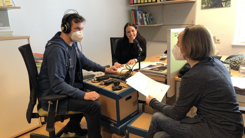 Produzent Florian Winter arbeitet mit BIOSA-Geschäftsführerin Renate Haslinger und Sprecherin Andrea Köhler an der dritten Folge (Bild: BFW).