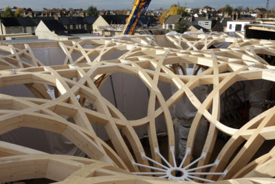Abb.2 - Die vorgefertigten Holz-Freiformen werden vor Ort zusammengesetzt. Foto Lehmann Group