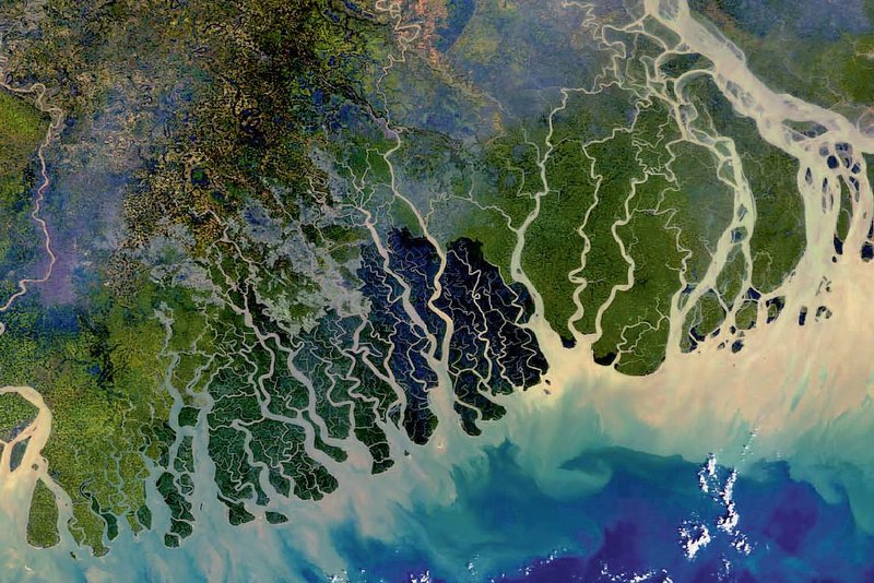 Abb. 1 - Das Gebiet Sundarbans, grösster geschlossener Mangrovenwald der Erde, überzieht weite Teile des Ganges-Brahmaputra-Deltas. Es besteht aus rund 240 Flüssen. Foto: www.seos-project.eu