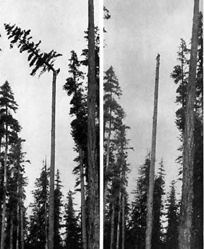 Abb. 2 und 3: Mächtige Sitkafichten. (Fotos: Mercury Logging Company) [2]