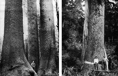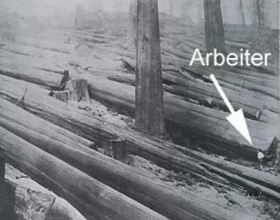 Dies schmälert allerdings den Parkgenuss kaum: Die Wälder sind im Bereich des Parks schon seit langer Zeit wieder sich selbst überlassen. Wer durch solch einen sich selbst überlassenen Sekundär-Urwald geht, die gewaltigen Bäume und die sich am Boden anhäufenden verrottenden Stämme betrachtet, mag kaum glauben, dass hier zu Beginn des zwanzigsten Jahrhunderts Fällaxt, Ochsengespanne und gigantische Seilanlagen gehaust haben [2]. Wen man allerdings genau hinschaut, entdeckt man in regelmäßigen Abständen riesige Baumstümpfe: um die drei Meter hoch und Durchmesser deutlich jenseits von zwei Metern. Die Stümpfe weisen meist zwei Meter über dem Boden eigentümliche Löcher auf, etwa zwanzig Zentimeter im Geviert. In diese Löcher hatten die alten Holzfäller ihre "Springboards" gesteckt, auf denen sie hoch über dem Boden standen und die charakteristische doppelköpfige Fällaxt schwangen. Ziel war es, oberhalb des besonders dicken Wurzelanlaufs etwas leichteres Spiel beim Fällen der Baumriesen zu haben. Erst mit Einführung leistungsfähiger Motorsägen Mitte des zwanzigsten Jahrhunderts verschwanden Fällaxt und Springboard und die Stöcke wurden niedriger.