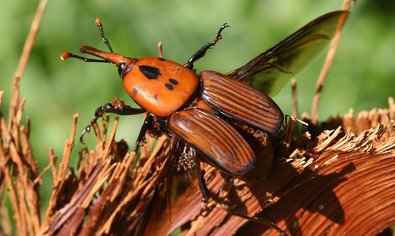Der Käfer selbst richtet keinen direkten Schaden an, eigentlicher Schädling sind die Larven. Die Eiablage erfolgt in der Krone der Palme. Die bis zu 50 Millimeter große Larve frisst von Beginn an in Richtung Palmenmitte und zerstört dabei häufig den Vegetationskegel, das „Palmenherz“. Daraufhin stirbt die befallene Palme ab. Die Palmwedel werden von der Mitte aus gelb und gehen nach und nach ein – bis die gesamte Krone nach einigen Wochen komplett braun und abgestorben ist.