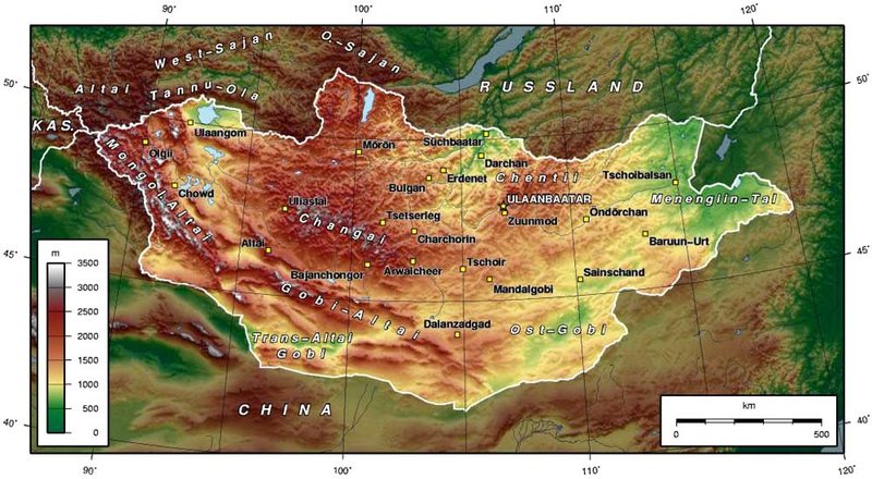 Abb. 2: Topografische Karte der Mongolei (Quelle: wikipedia)