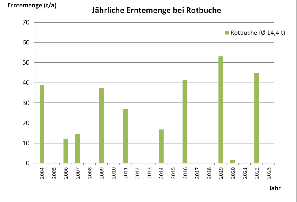 Die Rot-Buche fruktifiziert in Brandenburg in regelmäßigen Abständen etwa aller drei Jahre. Da die Nachfrage, nicht zuletzt wegen der im Land nur begrenzt verfügbaren geeigneten Standorte, in den letzten Jahren deutlich zurückgegangen und das Saatgut bis zu fünf Jahre lagerfähig ist, kann zum gegenwärtigen Zeitpunkt von einer ausreichenden Versorgung ausgegangen werden.