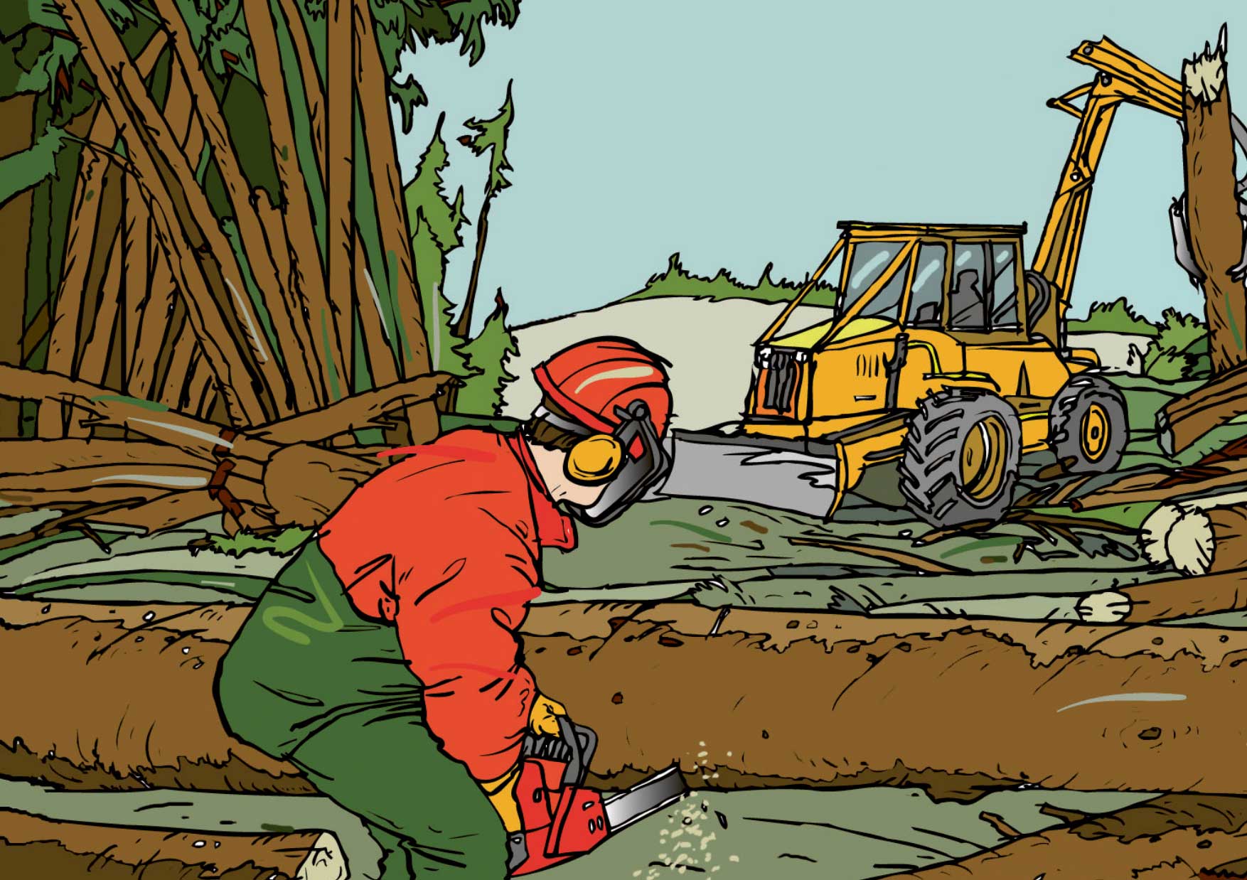 In Zusammenarbeit mit Bagger oder Harvester dürfen im unübersichtlichen Verhau keinesfalls mehrere in Verbindung stehende Bäume bearbeitet werden. Zudem muss die Kommunikation zwischen Abstocker und Maschinenführer durch technische Hilfsmittel unterstützt werden.