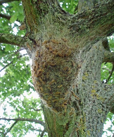 Die letzten Jahre waren für den Eichenprozessionsspinner offensichtlich günstig. Vielerorts traten die von dem Spinner erzeugten Gespinste in größerem Umfang auf, gerade auch in vielbesuchten Parks oder privaten Gärten. Die Gespinste mussten dann mit großem Aufwand entfernt werden.