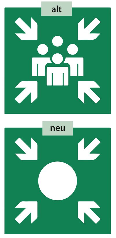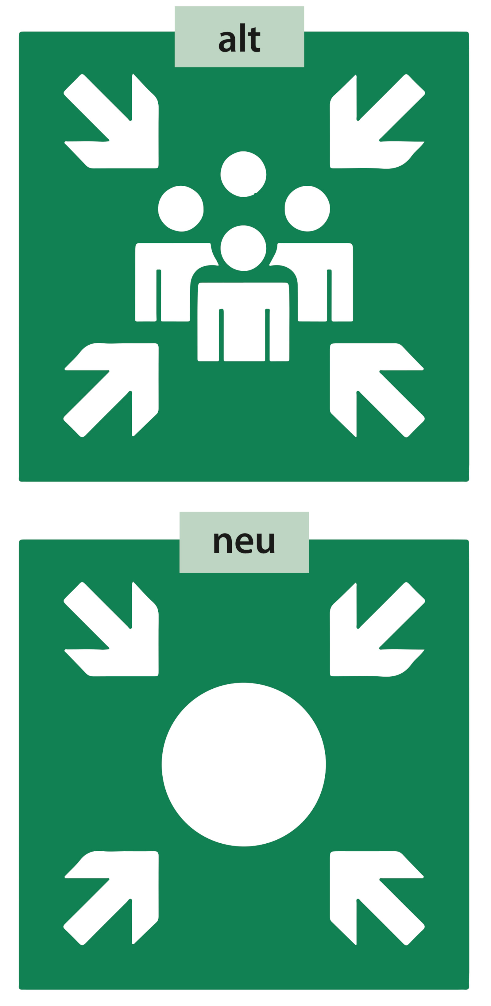 Leider kommt es auch immer wieder vor, dass Rettungstreffpunktschilder "verschwinden". Schilder werden gestohlen, umgefahren oder für Bauarbeiten abgenommen und danach nicht wieder aufgestellt. Teilweise werden Schilder auch mutwillig beschädigt – zum Beispiel wird die Farbe abgekratzt oder das Schild wird mit Farbe übersprüht. Auf der Fläche finden sich zwei verschiedene Symbole auf den Schildern – es sind aber beide gültig.