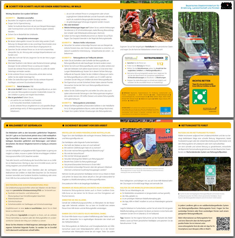 Abb. 5: Eine Schritt-für-Schritt-Anleitung zum richtigen Handeln bei Unfällen finden Sie im Faltblatt "Richtig Retten", herausgegeben vom Bayerischen Staatsministerium für Ernährung, Landwirtschaft, Forsten und Tourismus.