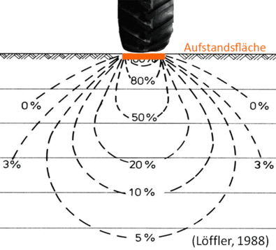 Eine bodenschonende Wirkung haben breite Reifen, ein geringerer Reifeninnendruck und eine geringe Radlast. Alle drei Anpassungen helfen den Kontaktflächendruck zu reduzieren, wobei letztere die beste Wirkung erzielt.