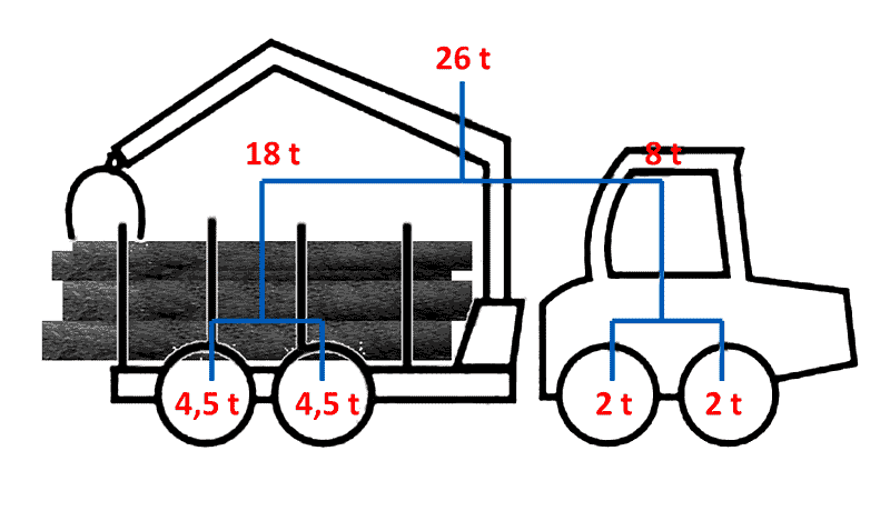 Abb. 2: Das Gesamtgewicht verteilt sich unterschiedlich auf die verschiedenen Achsen.