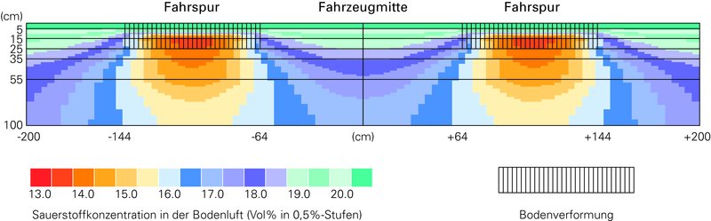 Im Falle der Verdichtung trifft es stets den Luftanteil, die Folgen sind eine Beeinträchtigung der biologischen Aktivität und ein Zuwachsverlust.