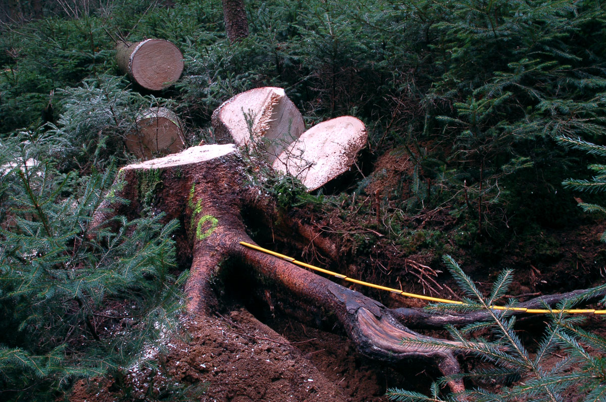 Relevant ist auch, ob ein Unterschied zwischen Raupe und Rad besteht. Dies wurde zum einen in Verbindung mit dem Regenerationsvermögen geschädigter Böden untersucht. Dabei stellte sich heraus, dass bei einem Untersuchungszeitraum von sechs Jahren nur bei dem Raupenfahrzeug von Regeneration gesprochen werden konnte (Kremer 2008). Zum anderen wurden die Wurzelverletzungen (Abb. 4) bei beiden Verfahren verglichen. Es hat sich herausgestellt, dass nicht das Ausmaß sondern die Anzahl der Schäden an den Wurzeln bedeutsam ist. Hier halten sich Raupe und Rad in etwa die Waage. Die Bodenstruktur selbst wird bei einer Befahrung mit Rädern mehr beeinträchtigt als bei einer Befahrung mit der Raupe. Wird allerdings ein Forwarder eingesetzt, ist am Ende kein Unterschied mehr erkennbar (Borchert et al. 2008).