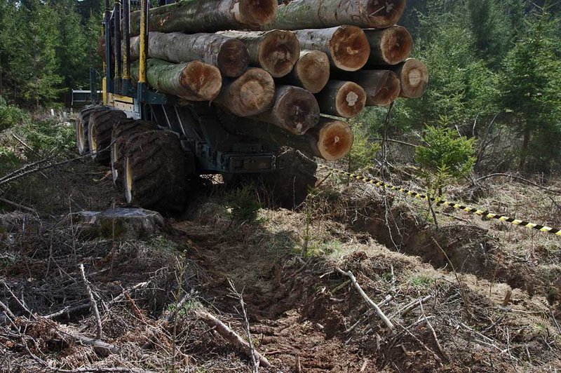 Abb. 2: Beladener Forwarder HSM 208F mit 25t Gesamtgewicht bei der Befahrung der Versuchsfläche. (Foto: FVA/Wilpert)