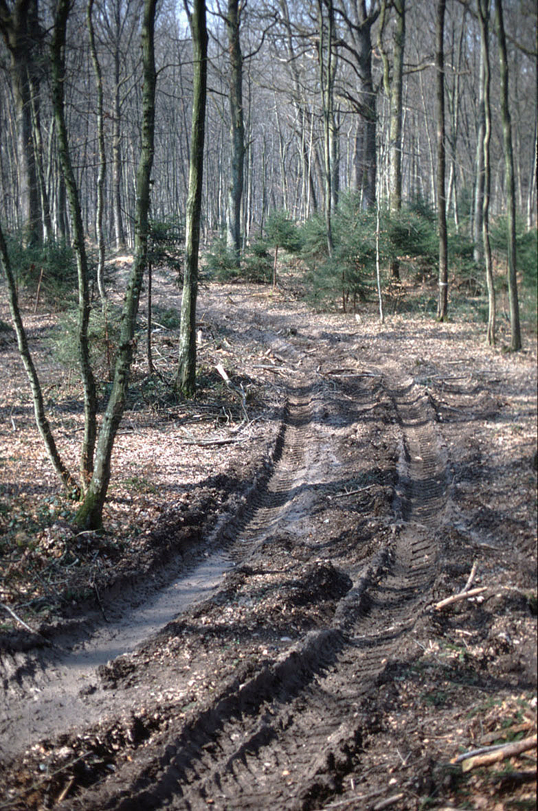 Eingeschränkte Porenvolumina und Porenvernetzung verringern die Transportleistung des Bodens für Wasser und Luft. Bodenfruchtbarkeit setzt auf jeden Fall eine Versorgung der Wurzeln mit Wasser und Luft voraus. Befahrungsbedingte Bodenbeeinträchtigungen vermindern nicht nur im Keimbeet die Chancen für die Naturverjüngung drastisch, sondern beeinträchtigen das ungestörte Wurzelwachstum im gesamten Wurzelraum.