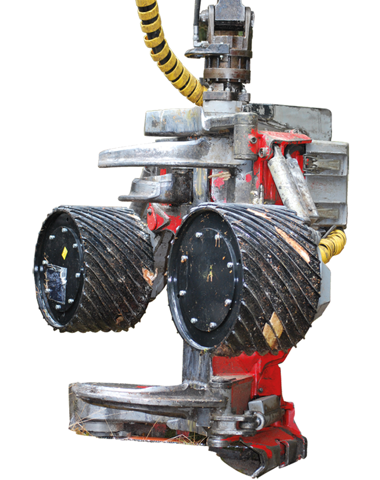 Die Entfernung der Rinde erfolgt durch die Vorschubwalzen, auf denen statt der konventionellen Stacheln messerartige Lamellen, sogenannte Stege, schräg aufgeschweißt sind. Durch den schrägen Anbau der Stege wird der Stamm im Aggregat um die eigene Längsachse in Rotation versetzt und die obere Rindenschicht wird auf ganzer Fläche gelockert. Die Messer können die Rinde dann entfernen. Um ausreichende Entrindungsprozente zu erreichen, müssen die Stämme mindestens dreimal in ganzer Länge durch das Aggregat gelassen werden. Bei den Aggregaten von Log Max und Ponsse erfolgt der Großteil der Entrindung bei den Vorwärtsbewegungen, also vom stärkeren zum schwächeren Ende, bei dem John Deere Aggregat in der Rückwärtsbewegung.