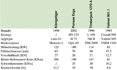 Angaben zu Maschinen- bzw. Aggregattypen mit Kennzahlen (wenigstens Motorleistung) sind angesichts der Vielfalt an Typen und deren schnellen Weiterentwicklung zwingend notwendig (Tab. 2).
