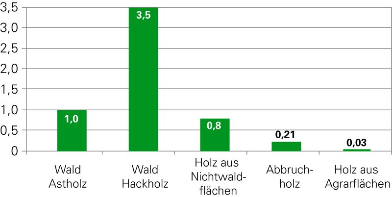 Abbildung 1: Holzaufkommen für die energetische Nutzung, gegliedert nach verschiedenen Quellen