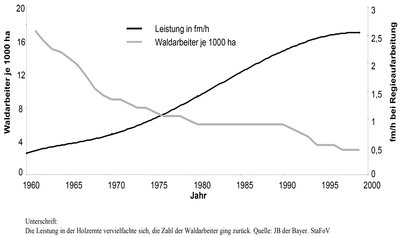 Betrachtet man die Mechanisierung der bundesdeutschen Forstwirtschaft der letzten 50 Jahre in Stichjahren und vergleicht diese Intervalle mit der aktuellen Situation, so lässt sich die folgende Chronologie zusammenstellen: