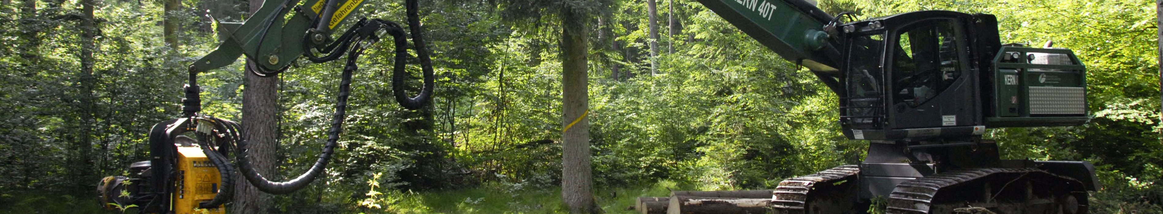 Im Folgenden soll nur die Vollmechanisierung der Holzernte mit den Bereichen Fällen, Entasten, Einschneiden und Rücken betrachtet werden, weil nur hierbei die Bestände mit Großmaschinen befahren werden.