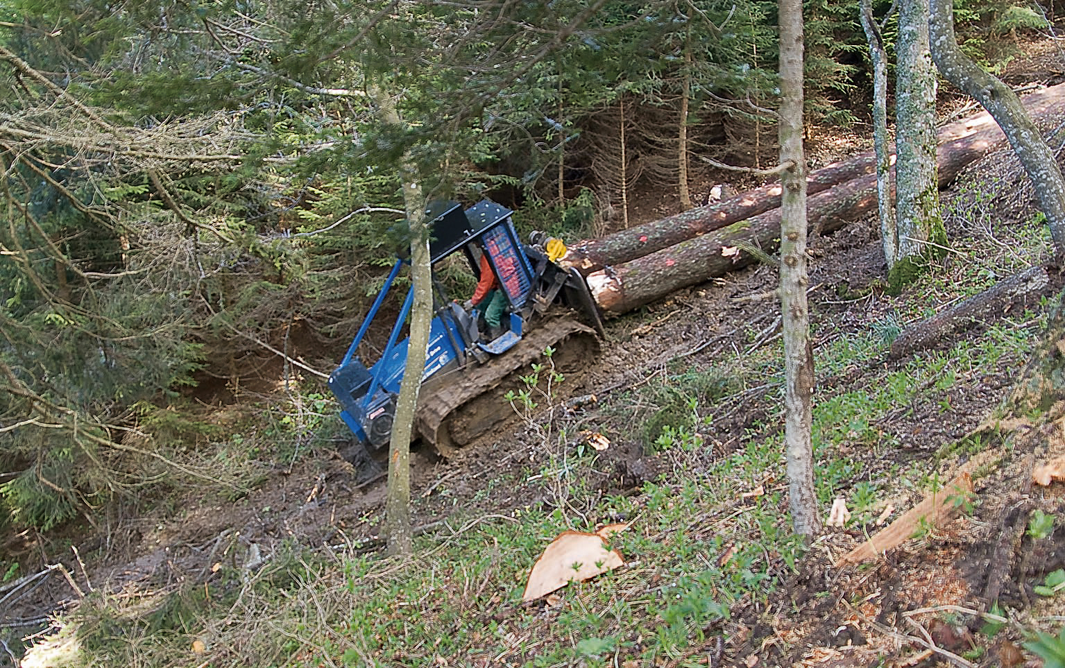 Als Forstunternehmer Philippe Masi aus Fleurier/NE auf dem Markt keinen Forsttraktor fand, der seinen Vorstellungen entsprach, suchte er Hilfe beim Landmaschinenmechaniker Martin Bühler. Dieser stellte ihm eine passende Maschine auf die Räder – beziehungsweise auf die Raupen. Das Gerät ist nun seit einigen Jahren im Einsatz und bewährt sich vor allem dort, wo es für Radmaschinen kein Weiterkommen mehr gibt.