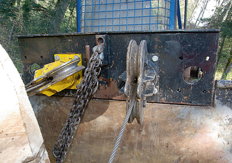 | Seilwinde: | Doppeltrommelwinde Adler 2 × 10 t, Seildurchmesser 13 mm, max. 100 m, Funkfernsteuerung, Antrieb über Frontzapfenwelle |