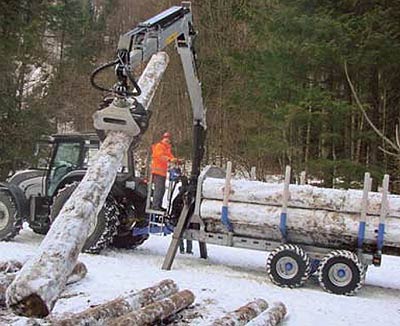 Die auf ebener Standfläche stabile A-Fuß-Kranabstützung wurde seit der Durchführung des Tests um einige Zentimeter verlängert, womit nunmehr auch in unebenem Gelände die notwendige Stabilität für die Kranarbeit gewährleistet werden kann. Der Kran Kesla 305 T mit kostengünstiger Zwei-Hebel-Eurosteuerung leistet gute Arbeit.