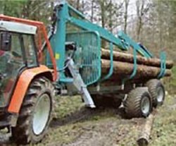 Bei frischem Fichtenblochholz (800 kg/Fm) sollten aber 15,8 Fm geladen werden, um die Tragfähigkeit des Anhängers zu 100 % nutzen zu können. Gut gelöst sind die Ladeflächenverlängerung samt verschiebbarem Achsschemel und verschiebbaren Rungenstöcken mit beweglichen Rungen. Durch die Gesamtbreite von 2,6 m ist die Schwerpunktlage trotz der großen Bodenfreiheit noch günstig.