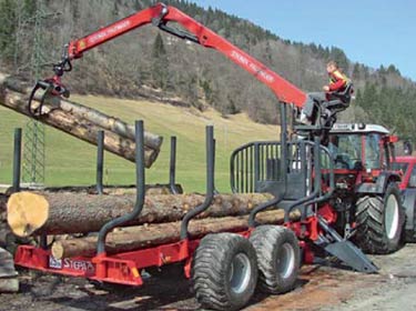Der Robuste mit Turboantrieb: Perfekte Sicherheitsausstattung und stabile Konstruktion kennzeichnen die Forstanhänger von Stepa. Das Ankuppeln ist dank guter, in die Deichsel integrierter Winde und in Haken versorgter Leitungen sehr bequem.