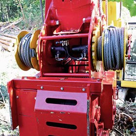 Ein Rückholseil für den sogenannten Dreiseilbetrieb fehlt dem Yarder. Die Vorrichtungen dafür sind aber vorhanden und Forstunternehmer können die Maschine bei Bedarf leicht mit einem Rückholseil für den Dreiseilbetrieb aufrüsten.