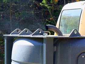 Abb. 4. Bei Bedarf kann man dank idealer Baggergeometrie die Abspannseile an den Befestigungsaugen am Heckrahmen verankern.