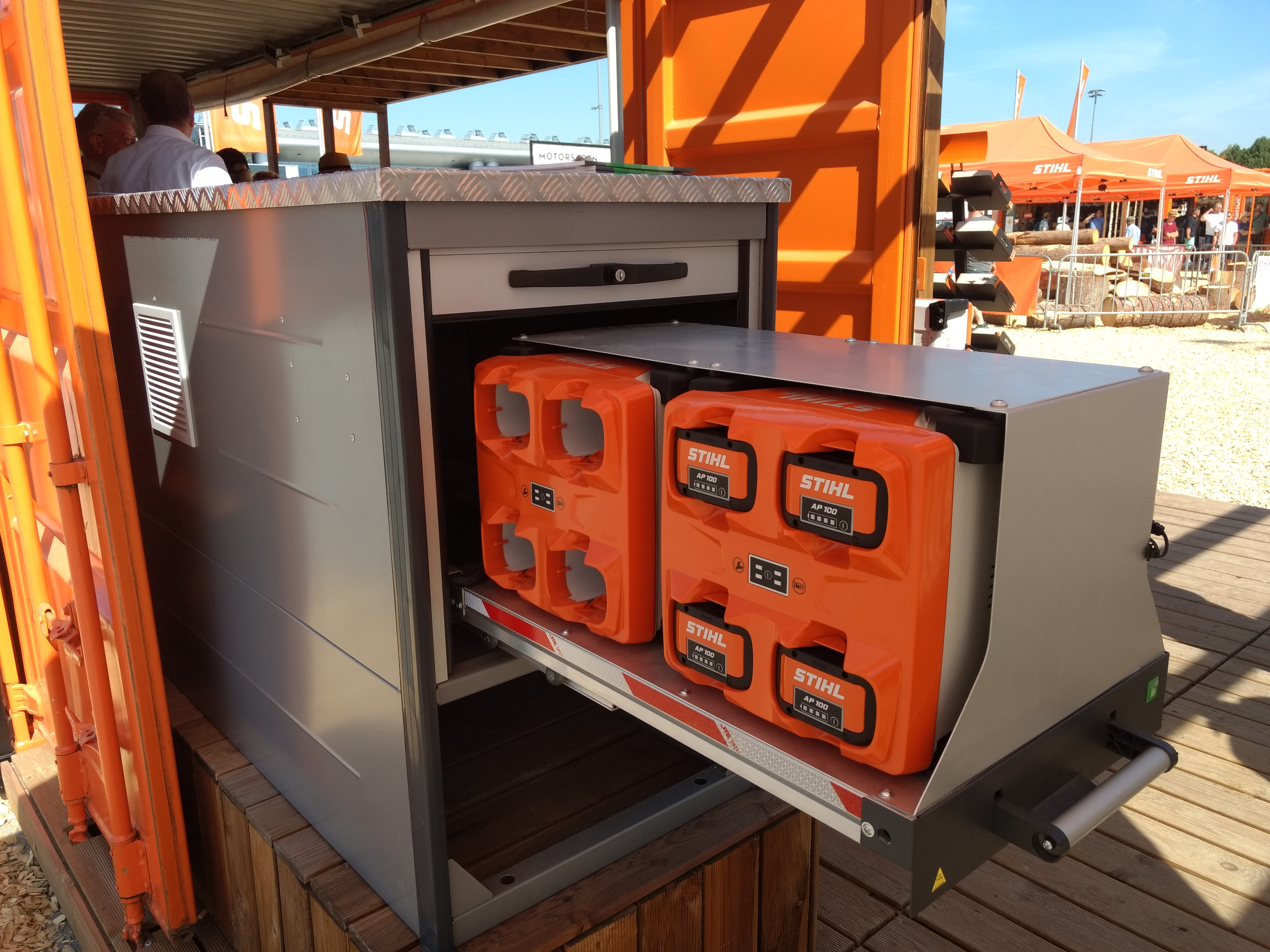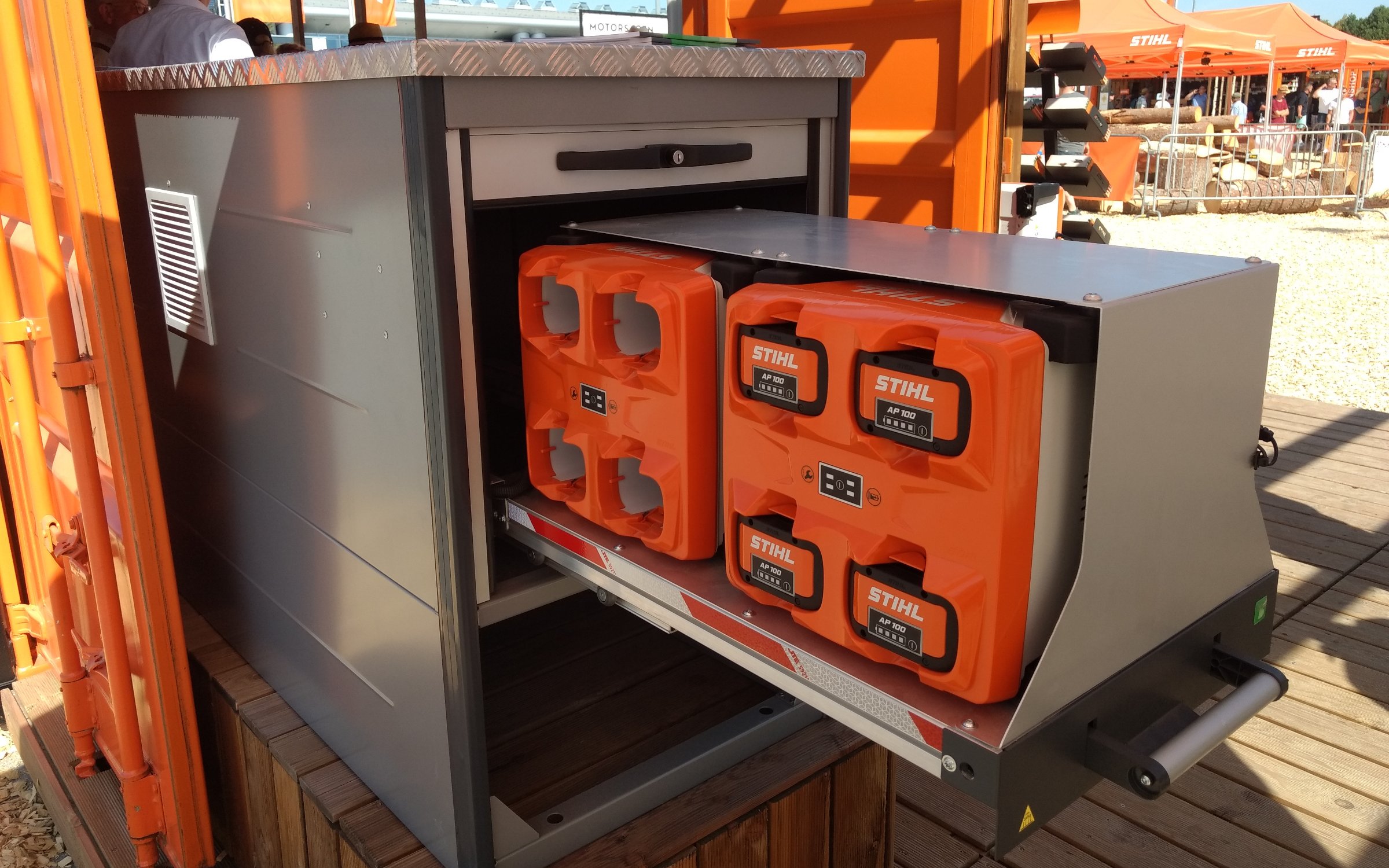 Stihl-Aufbewahrungssystem mit Ladefunktion für Werkzeugakkus sowie neue Akkusäge
